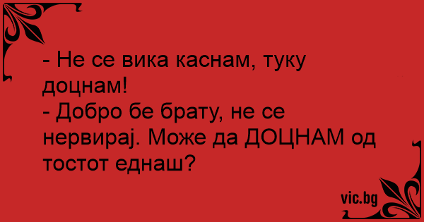 - Добро бе брату, не се нервирај. Може да ДОЦНАМ од тостот еднаш?