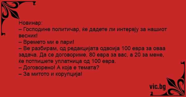 – Господине политичар, ќе дадете ли интервју за нашиот весник!