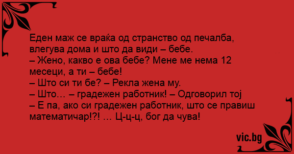 – Жено, какво е ова бебе? Мене ме нема 12 месеци, а ти – бебе!