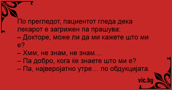 По прегледот, пациентот гледа дека лекарот е загрижен па прашува:
