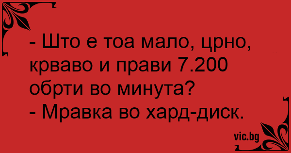 - Што е тоа мало, црно, крваво и прави 7.200 обрти во минута?