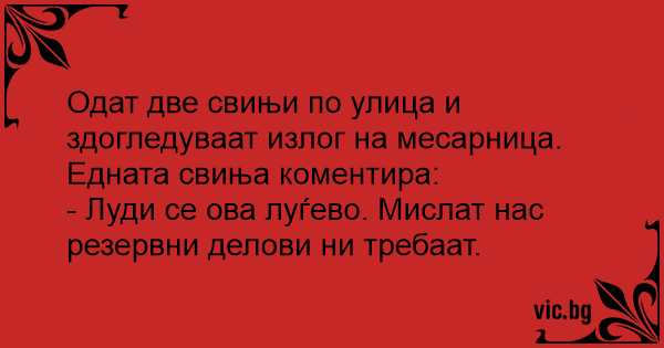 Одат две свињи по улица и здогледуваат излог на месарница.