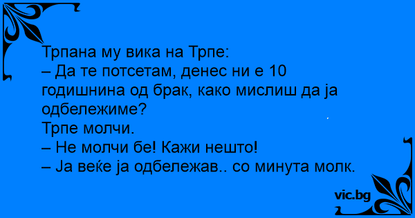 – Да те потсетам, денес ни е 10 годишнина од брак, како мислиш да ја одбележиме?