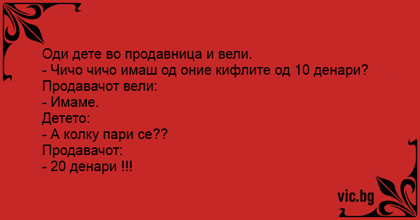 - Чичо чичо имаш од оние кифлите од 10 денари?
