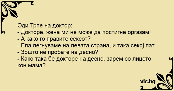 - Како така бе докторе на десно, зарем со лицето кон мама?