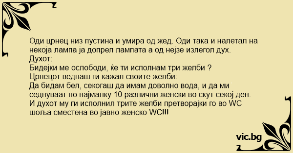 И духот му ги исполнил трите желби претворајки го во WC шоља сместена во јавно женско WC!!!