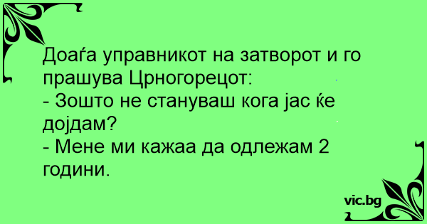 Доаѓа управникот на затворот и го прашува Црногорецот: