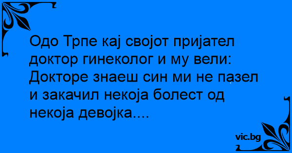 Одо Трпе кај својот пријател доктор гинеколог и му вели:
