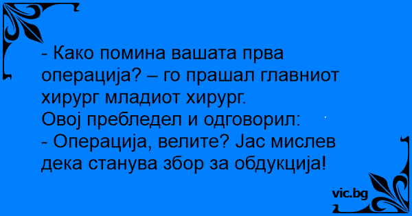 - Како помина вашата прва операција? – го прашал главниот хирург младиот хирург.