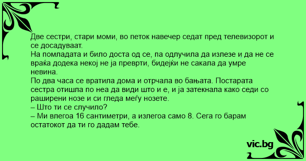 – Ми влегоа 16 сантиметри, а излегоа само 8. Сега го барам остатокот да ти го дадам тебе.