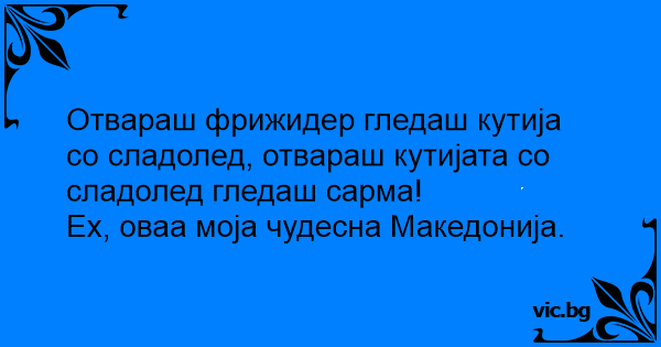 Отвараш фрижидер гледаш кутија со сладолед, отвараш кутијата со сладолед гледаш сарма!