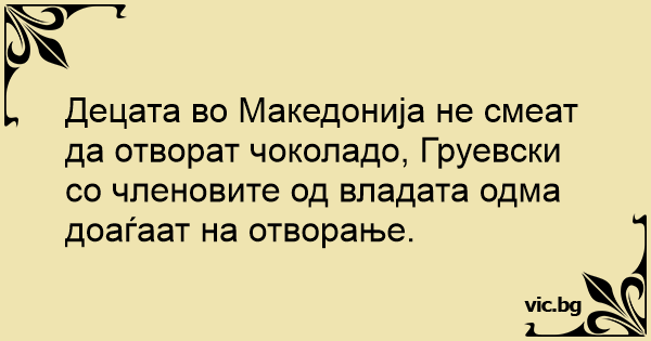 Децата во Македонија не смеат да отворат чоколадо, Груевски со членовите од владата одма доаѓаат на отворање.