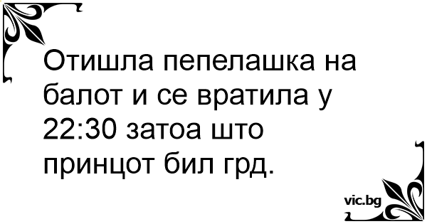 Отишла пепелашка на балот и се вратила у 22:30 затоа што принцот бил грд.
