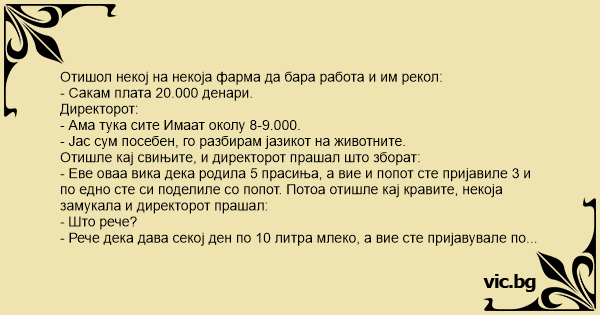 Отишол некој на некоја фарма да бара работа и им рекол:
