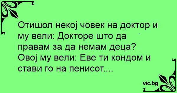 Отишол некој човек на доктор и му вели: Докторе што да правам за да немам деца?