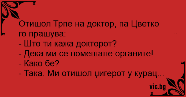 Отишол Трпе на доктор, па Цветко го прашува: