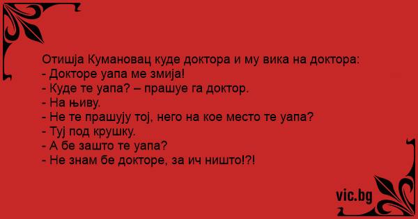 Отишја Кумановац куде доктора и му вика на доктора: