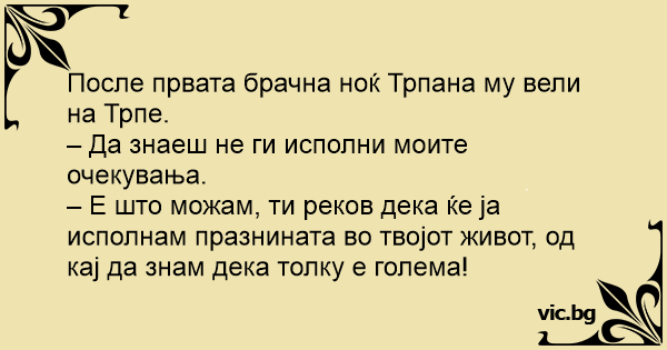 – Е што можам, ти реков дека ќе ја исполнам празнината во твојот живот, од кај да знам дека толку е голема!
