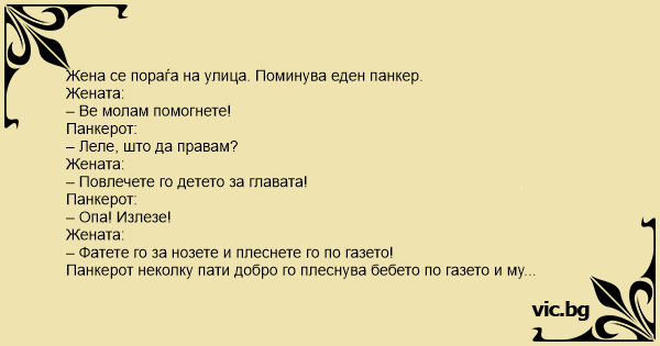 Панкерот неколку пати добро го плеснува бебето по газето и му вели:
