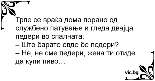 – Не, не сме педери, жена ти отиде да купи пиво…