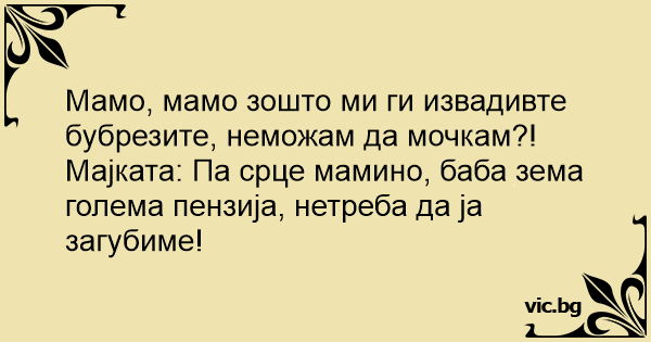 Мајката: Па срце мамино, баба зема голема пензија, нетреба да ја загубиме!