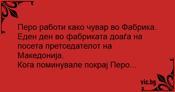 Перо работи како чувар во Фабрика.