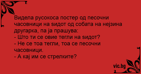 Видела русокоса постер од песочни часовници на ѕидот од собата на нејзина другарка, па ја прашува: