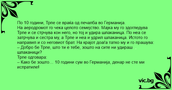 – Добро бе Трпе, што ти е тебе, зошто на сите ни удираш шлаканици?