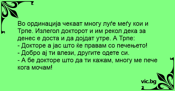 - А бе докторе што да ти кажам, многу ме пече кога мочам!