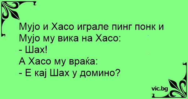 Мујо и Хасо играле пинг понк и Мујо му вика на Хасо: