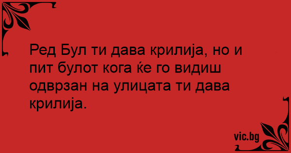Ред Бул ти дава крилија, но и пит булот кога ќе го видиш одврзан на улицата ти дава крилија.