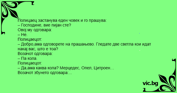 – Ти си пијан. Ај сега одговори на ова прашање: Гледате едно светло кое иде накај вас, што е тоа?