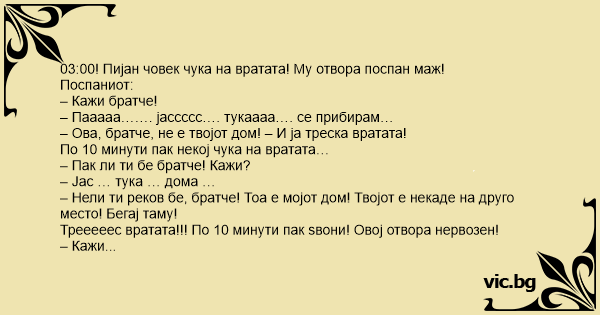 03:00! Пијан човек чуka на вратата! Му отвора поспан маж!