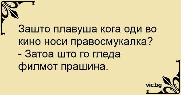 Зашто плавуша кога оди во кино носи правосмукалка?