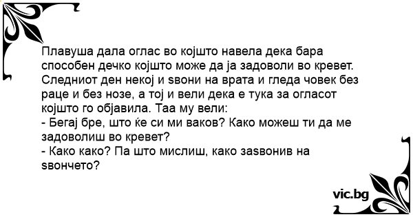 Плавуша дала оглас во којшто навела дека бара способен дечко којшто може да ја задоволи во кревет.