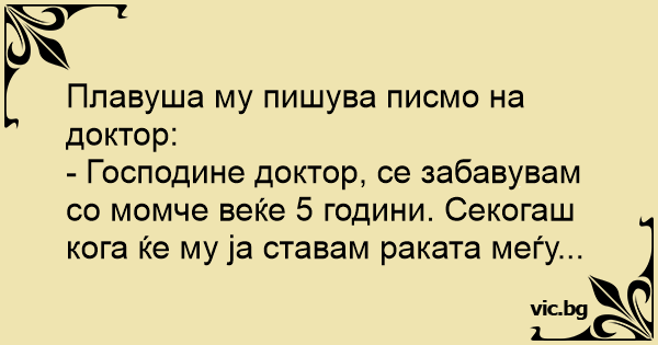 - Господине доктор, се забавувам со момче веќе 5 години. Секогаш кога ќе му ја ставам раката меѓу...