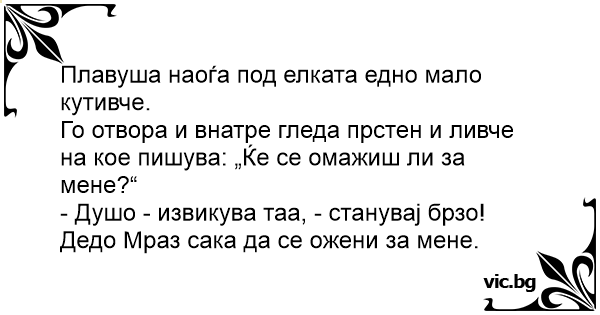 - Душо - извикува таа, - стануваj брзо! Дедо Мраз сака да се ожени за менe.