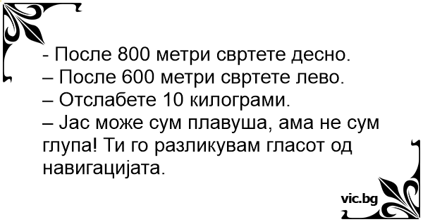 – Јас може сум плавуша, ама не сум глупа! Ти го разликувам гласот од навигацијата.
