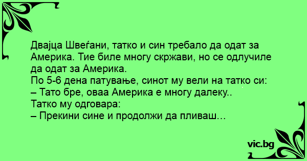 Двајца Швеѓани, татко и син требало да одат за Америка. Тие биле многу скржави, но се одлучиле да одат за Америка.