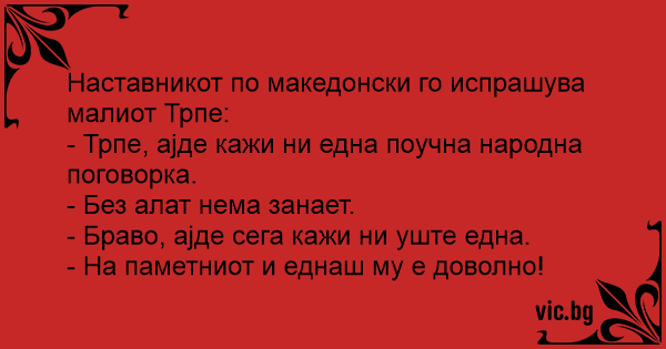 - Трпе, ајде кажи ни една поучна народна поговорка.
