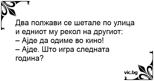 Два полжави се шетале по улица и едниот му рекол на другиот: