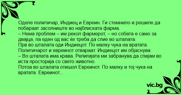 Оделе политичар, Индиец и Евреин. Ги стемнило и решиле да побараат засолниште во најблиската фарма.