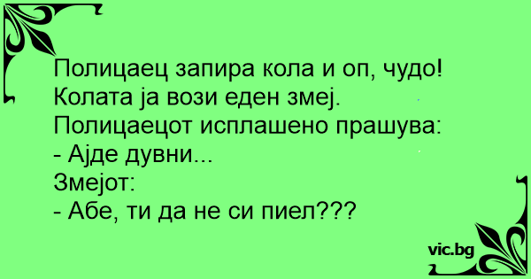 Полицай спира кола и о, чудо! Колата я кара един змей.