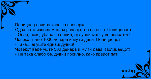 Човекот ваде 1000 денара и му ги дава. Полицаецот: