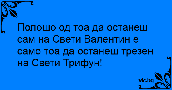 Полошо од тоа да останеш сам на Свети Валентин е само тоа да останеш трезен на Свети Трифун!