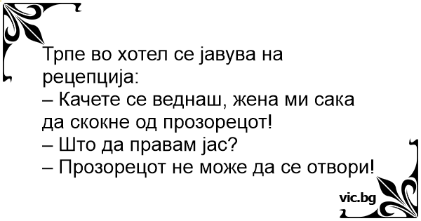 – Качете се веднаш, жена ми сака да скокне од прозорецот!