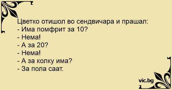 Цветко отишол во сендвичара и прашал: