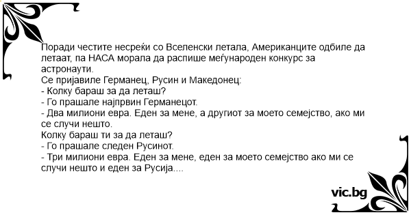 Поради честите несреќи со Вселенски летала, Американците одбиле да летаат, па НАСА морала да распише меѓународен конкурс за астронаути.