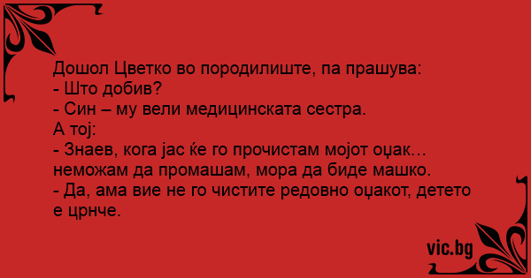 - Да, ама вие не го чистите редовно оџакот, детето е црнче.
