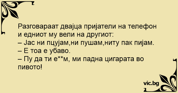 – Пу да ти е**м, ми падна цигарaта во пивото!